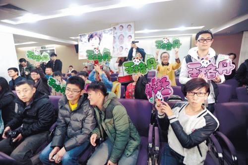 “等到王珞丹走到柱子這里,我們就喊口號,看我手勢啊,數到2就開始,大聲點!”從大連、海城、鞍山、丹東、錦州等多個城市趕來的“丹磁”(王珞丹粉絲昵稱)早早就趕到本報的見面會現場做準備,他們中最小的今年剛剛上高中一年級,大多數是二十歲左右的少男少女。一位“丹磁”告訴記者,他們聽說王珞丹腳受傷了,特意給偶像帶來了拖鞋、豬蹄、錦州烤雞,特別貼心。“準備好,來啦來啦,唉……不是呀。”原來是本報記者從門口走進來,“丹磁”大呼白浪費了一次感情。