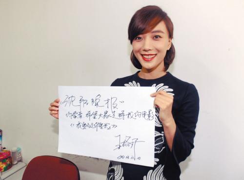 在俺們的官方微博(@沈陽晚報)留言,關注俺們沈陽晚報的官方微信號(sywb88),然后你們就能隔空和大美女王珞丹提問交流了,這樣千載難逢的機會就在昨日下午王珞丹做客沈陽晚報的活動現場出現。當由本報記者臨時客串的主持人,把本報讀者留在微博和微信上五花八門的問題拋給王珞丹時,她一會兒深沉,一會兒爆笑,一會兒羞澀,一會兒爽快,回答得那叫一個敞敞亮亮——